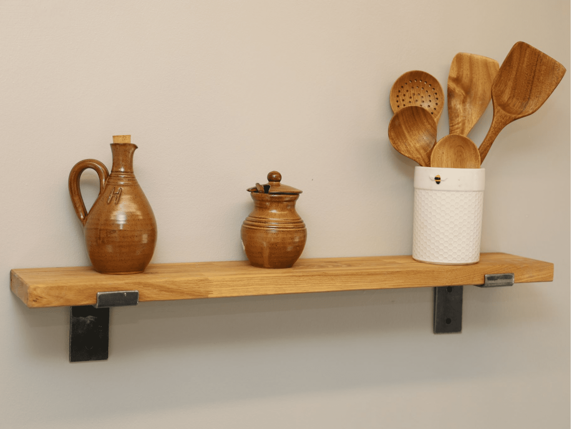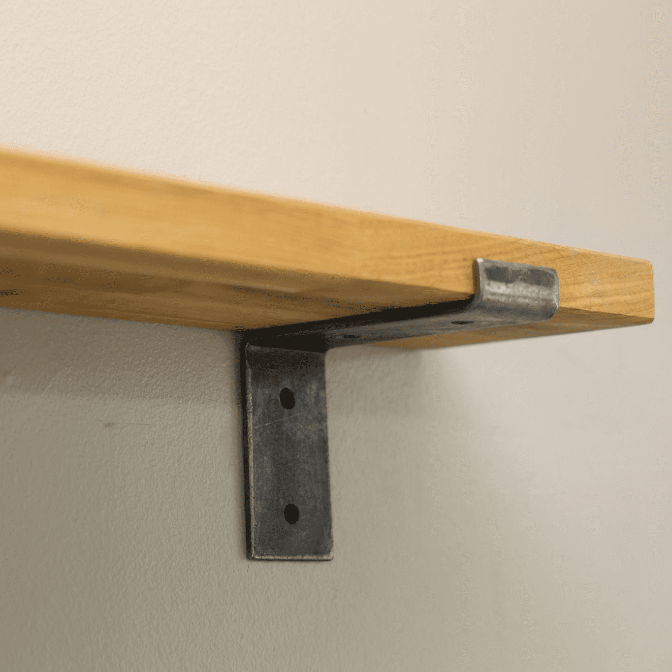 Corsair solid oak wooden shelf with industrial style metal support brackets